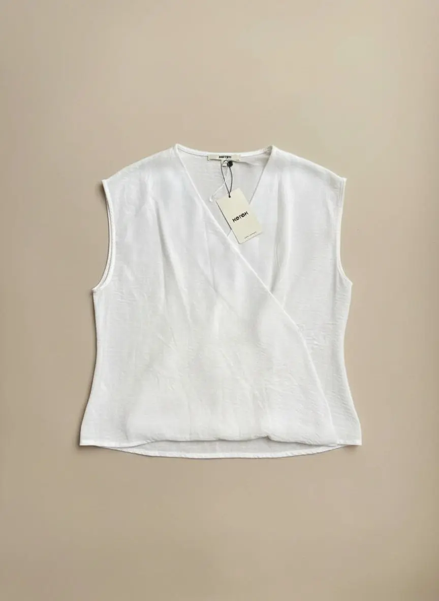تاپ زنانه سفید مدل Wrap از برند معتبر KOTON Turkey انتخابی ساده، شیک و همیشه کاربردی است. این تاپ با طراحی مینیمال و برش ضربدری (wrap) جلوهای ظریف و مرتب به استایل روزانه یا رسمی شما میبخشد.از پارچهی لطیف و خنک تهیه شده و با دوخت باکیفیت ترکیهای، راحتی و زیبایی را همزمان به شما هدیه میدهد.مناسب برای ست کردن با شلوارکهای رنگی، جین یا دامنهای نخی ـ انتخاب ایدهآل برای استایل تابستانی مدرن.